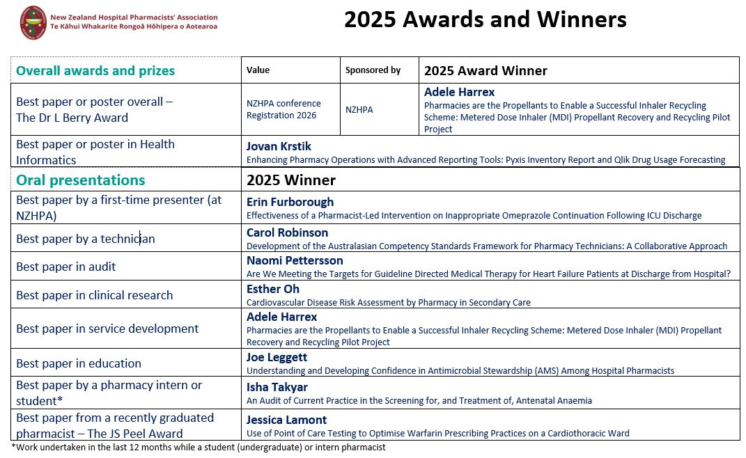Congratulations to Niamh McGuigan a Technician from Christchurch Hospital, and Joseph Vangioni, a Pharmacist from Gisborne Hospital.